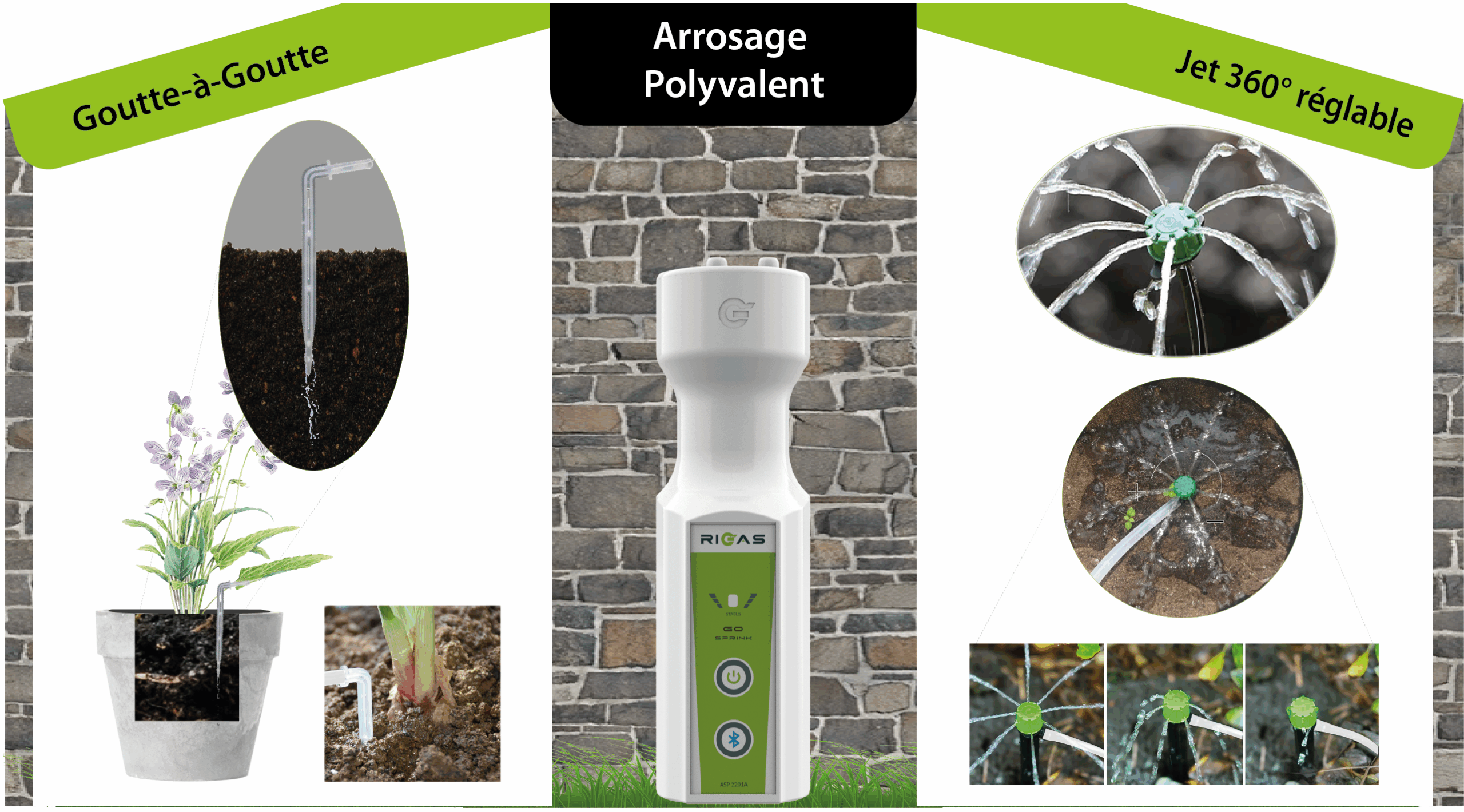 "Goutte-à-Goutte" & en "Jet 360° réglable"